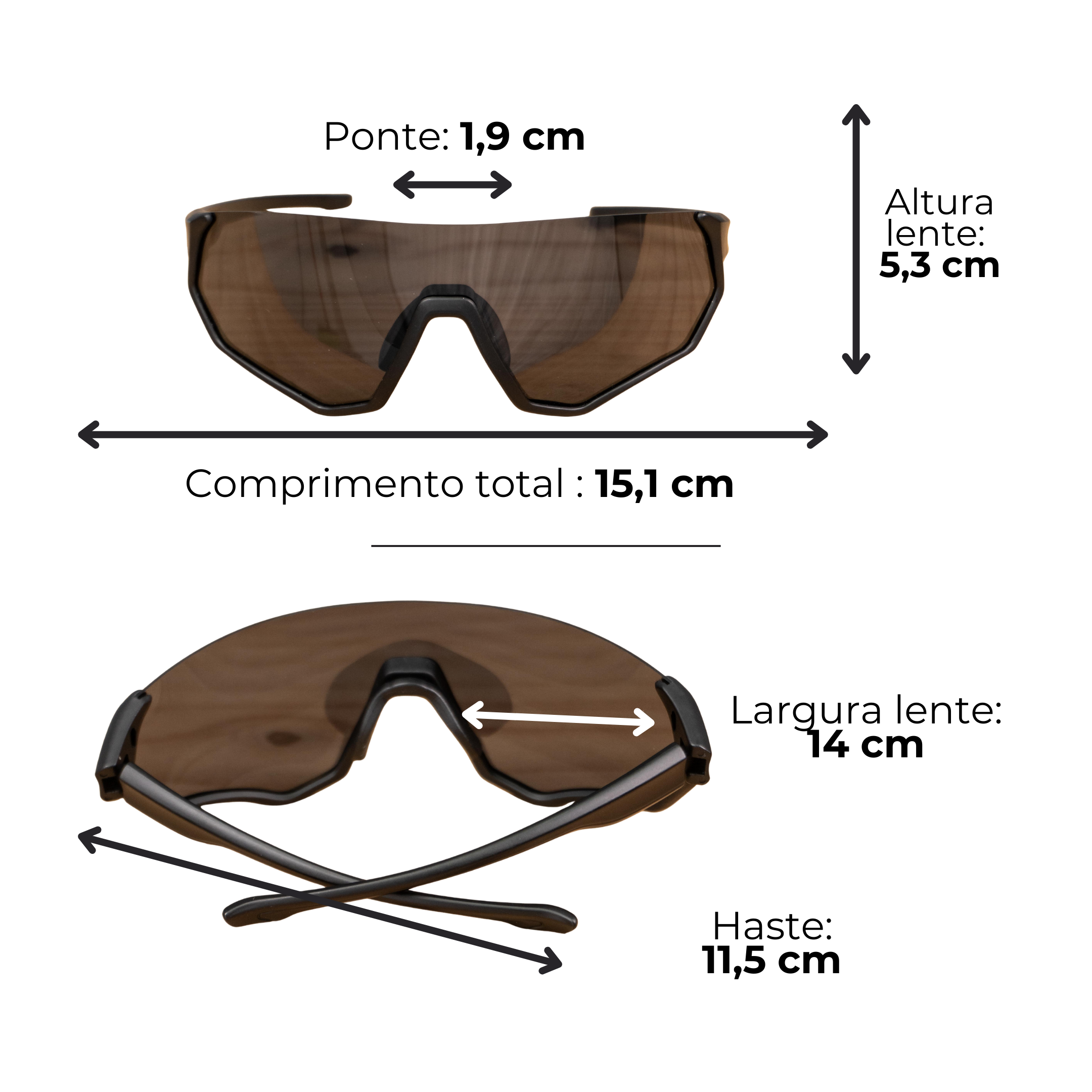 • Lentes polarizadas com proteção UV400: Reduzem reflexos, aumentam a nitidez e garantem muito mais conforto visual mesmo nos dias mais ensolarados.