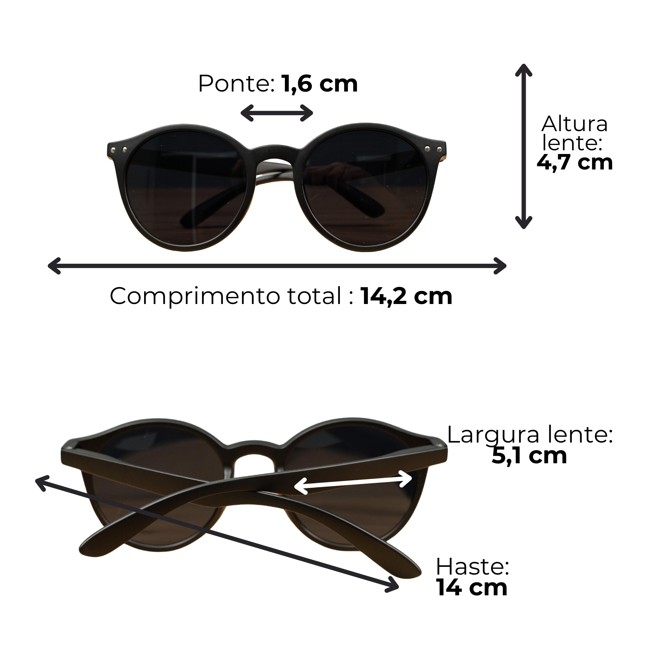 • Largura da lente: 5,1 cm