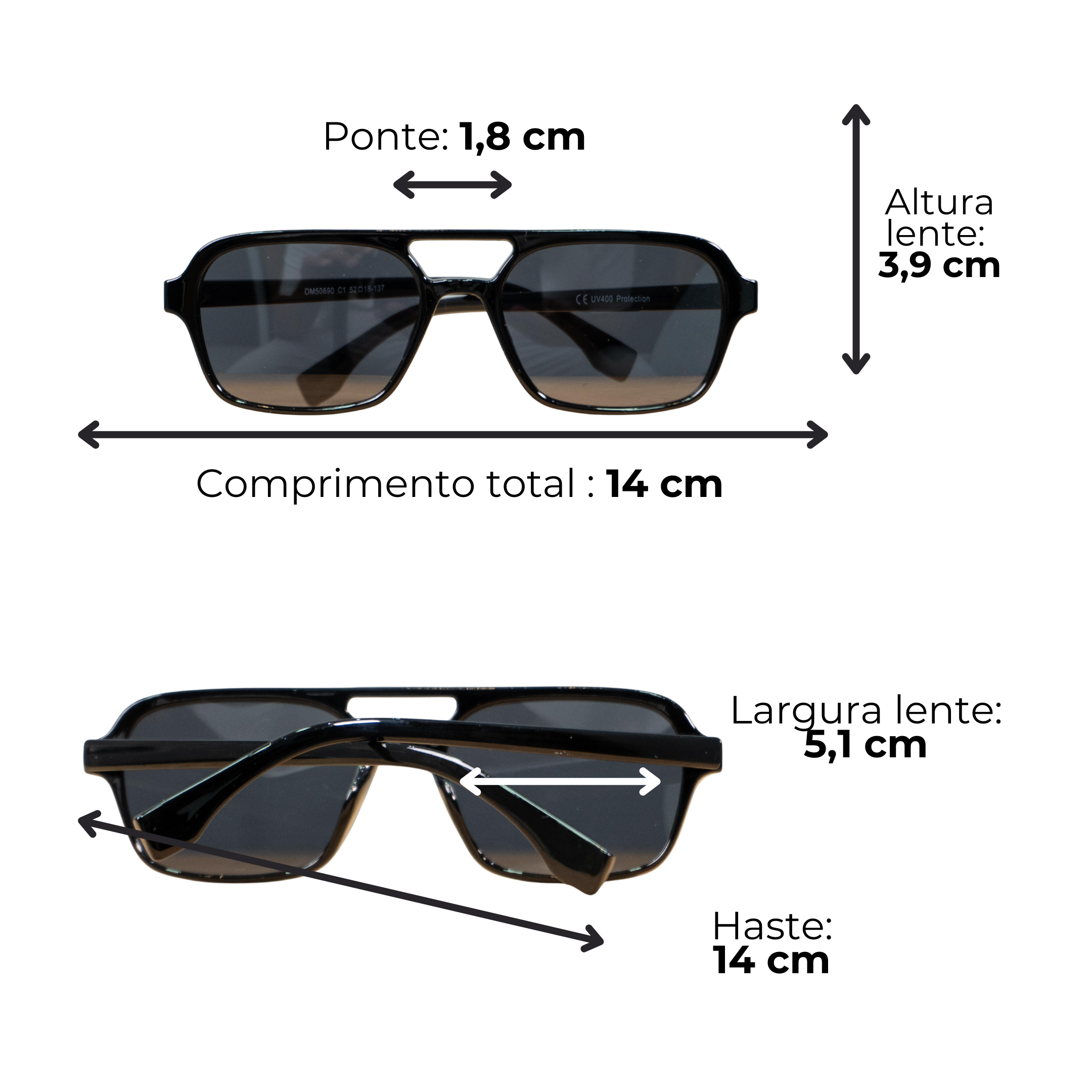 • Largura da lente: 5,1 cm